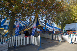Am angestammten Platz im Park von Laken, nur wenige Meter vom weltberühmten Wahrzeichen der Stadt, dem Atomium, entfernt steht der Circus auf einer weiten Rasenfläche. Im strahlenden Sonnenschein des Allerheiligentages glänzt das gepflegte Material in der Parklandschaft.