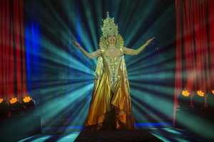 Die Donnert Dancers haben ihren ersten Auftritt bereits begonnen, als Sängerin Christine Gogolin in Begleitung von Clown Pepe Jardim „leicht verspätet“ eintreffen. Während das Ballett mit seiner Choreographie fortfährt, legt die Diva in erstaunlich kurzer Zeit eine phantastische goldene Robe, die zwischen Eisköningin und Erzengel angesiedelt ist, an.