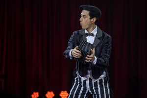 Bounce-Jongleur Nicolas Lagroni, gerade achtzehn Jahre alt, beherrscht sein Metier perfekt. Mit drei, fünf und sieben weißen Bällen erfolgen die vielseitigen Muster in erstklassiger Weise und in einer kurzen Sequenz werden gar neun Bälle beherrscht. Schließlich erklimmt der Jongleur, dabei weiter jonglierend, einen Stuhl und zu guter Letzt finden die Bälle ihren Weg in den Transportkoffer.