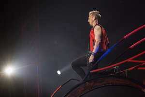 Die finale Darbietung arbeitet Andrej Pogorelov auf dem Todesrad. In und auf dem ausgefallen designeten stylischen Requisit erfolgen zunächst vielseitige Sprünge im Kessel, die in einem Salto gipfeln. Blindlauf und Seil springen beherrscht der versierte Artist, der es leider ein wenig an Showmanship mangeln lässt und daher nicht den Applaus, den diese Nummer verdient bekommt, natürlich auch. Nach den riskanten hohen Absprüngen folgen spektakuläre Saltos außen auf dem Rad. Ein Vorwärts- und ein Rückwärts-Salto werden, und das sei weltweit einmalig lässt man das Publikum wissen, fügt Andrej Pogorelov noch einen Rückwärts-Schraubensalto hinzu.
