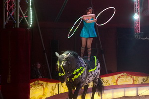 Der zweite Programmteil beginnt mit einer weiteren herausragenden equestrichen, heute nur noch selten zu sehenden, Darbietung. Chantal die Ballerina zu Pferd wechselt u.a. beim durchqueren eines Kabinetts in Quick Change Manier mehrfach ihr Kostüm. Im Anschluss erfolgen einige Passagen mit Hula Hoop zu Pferd. Im weiteren Verlauf des Acts kommt Christiano auf einem zweiten Kaltblutpferd hinzu und mit einem vertiablen „Pas de Deux“ findet der Auftritt seine Fortsetzung. Gekonnt werden die vielfältigen Figuren ausgeführt. Der Stand im Zwei-Mann-Hoch kennzeichnet den Höhepunkt der fulminanten und elegant vorgetragenen Darbietung.
