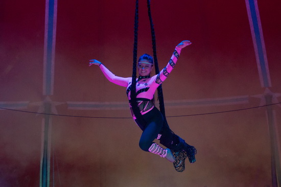Die zweite Luftnummer im Programm arbeitet Ashanti am und im Netz. Auch dieser Auftritt gewinnt durch Marvin, der mit seiner Trompete in der Manege für den emotionalen Rahmen sorgt.
