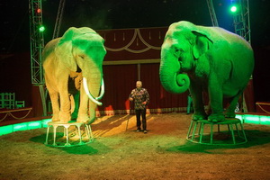 Den Höhepunkt des Programms bildet die Elefantendressur. Direktor Hardy Weisheit präsentiert zwei seiner mächtigen und schwergewichtigen Dickhäuter in einer humanen und tiergerechten Dressurfolge. Laufarbeit und akrobatische Elemente, u.a. ein Kopfstand flüssig und direkt aus dem laufen ausgeführt, wechseln einander ab und Aktionen auf den Tonneaus ergänzen den Ablauf. Die meisten Zuschauerrekationen erzielen allerdings die Torschüsse mit einem überdimensionalen „Fußball“.