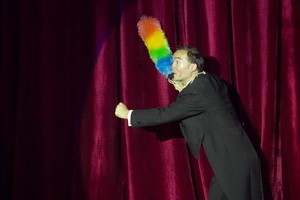 Der Clown und ein Helfer versuchen ein dickes Tau, das bis in die Manege reicht, unter der Gardine hervor zu ziehen. Erst die Mithilfe eines Zuschauerkindes zeigt Wirkung und eine wilde „Bestie“ brüllt jenseits des Vorhangs auf. Nachdem sich die drei „Helden“ in Sicherheit gebracht haben, kommt ein kleiner Hund in einem Löwenkostüm zum Vorschein.