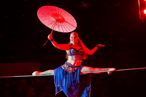 Miss Shirley bietet eine umfassende Trickfolge an den Strapatentüchern. Die sympathische junge Frau agiert kraftvoll und führt die unterschiedlichen Posen elegant aus. Mit ungesichert vorgetragenen Abfallern bietet der Auftritt auch den nötigen Nervenkitzel. In einem zweiten Auftritt tanzt Shirley auf dem gespannten Silberdraht. Zu den treibenden Klängen der Begleitmusik läuft die Nummer im Bollywood-Stil temperamentvoll ab. Vielerlei Schrittfolgen wechseln mit unterschiedlichen, sehr sicher dargebotenen Balancen ab und ein souverän ausgeführter Spagat bildet den Höhepunkt des Auftritts.