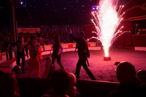 Ein effektvolles Feuerwerk gibt dem Finale den stimmigen Rahmen und gemeinsam verabschieden sich die Mitwirkenden vom restlos begeisterten Publikum. Überrascht stellen die Besucher fest, dass es lediglich fünf engagiert auftretender Künstler im roten Ring bedurfte, ein gutes und temperamentvoll präsentiertes zweistündiges traditionelles Circusprogramm zu initiieren.