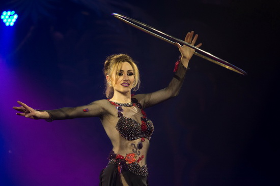 Anouschka Bouglione arbeitet auch in dieser Spielzeit ihre hinreißende Hula-Hoop Darbietung. In vielerlei Variationen lässt die charmante Artistin die Reifen um ihren Körper rotieren.