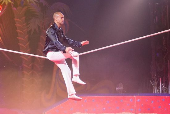 Yosvani Rodriguez, hierzulande u.a. von einem Engagement beim Circus Voyage bekannt, ist mit zwei Darbietungen im Programm vertreten. Zunächst sehen wir ihn mit seinem, mit südamerikanischem Temperament vorgetragenen Act auf dem Elastic-Seil. Hohe Sprünge und verschiedene Vorwärts- und Rückwärtssaltos bestimmen die Trickfolge in diesem Genre. Im zweiten Programmteil sehen wir ihn mit einer veritablen Luftnummer. An den Strapaten erfolgen viele kraftvoll ausgeführte Tricks und weite Flüge führen durch die Zeltkuppel.