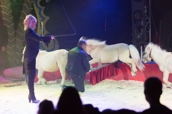 Sechs Shetland Ponys, die von Madame Linda Bouglione vorgeführt werden, komplettieren den abwechslungsreichen Reigen der Tierdressuren.