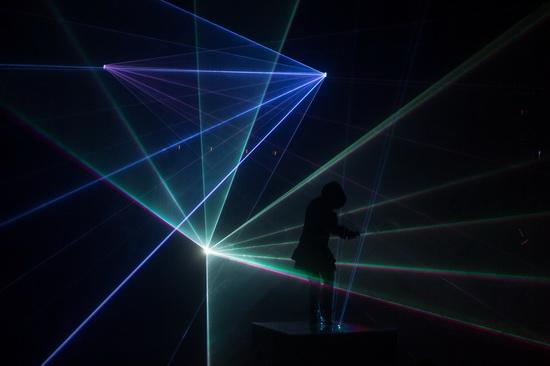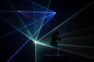 „Laser-Woman“ Ofelia Nistorov zaubert mit den bunten Lichtstrahlen vielfältige Muster. Sie manipuliert in geschickter Weise die Strahlen und begeistert nicht nur die jüngeren Besucher mit der variantenreichen Lightshow.
