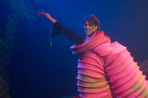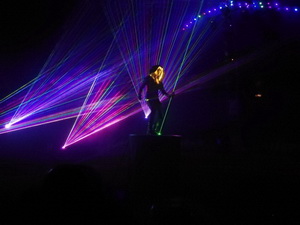 „Laser-Woman“ Ofelia Nistorov zaubert mit den bunten Lichtstrahlen vielfältige Muster. Geschickt werden die Strahlen variantenreicher Weise manipuliert und immer wieder ändern sich Farben und Muster des Lichtes, so dass nicht nur die jungen Zuschauer mit erstaunten Ausrufen reagieren.