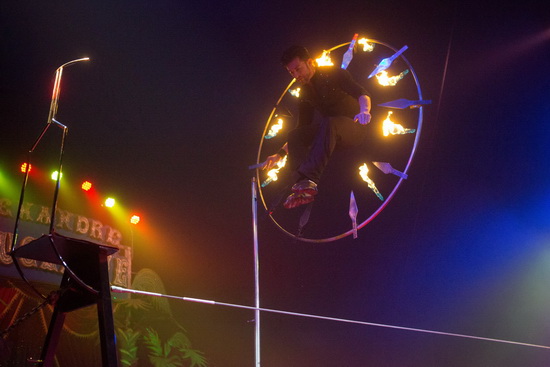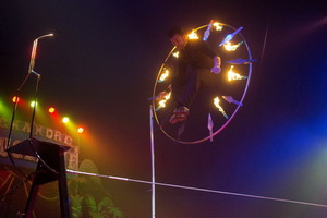 Nicol Nicols ist mit seiner auch bei uns bestens bekannten Drahseil-Darbietung – z.B. in der vergangenen Saison beim Circus Carl Busch – nun im Cirque Bouglione zu erleben. Hervorragend präsentiert und mit einem raffinierten Lichtdesign in Szene gesetzt, gewinnt der Auftritt, dem Nicols Partnerin Havi in der Manege tanzend einen besonderen Rahmen verleiht, sehr an Publikumswirksamkeit. Der Sprung durch einen Feuerreifen und ein Rückwärtssalto sind unverändert die Spitzentricks der Darbietung.