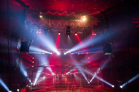 Die Lichtanlage und deren Einsatz lässt sich kurz und knapp mit einem Wort beschreiben – exzellent. An zwei Quertraversen zwischen den Masten, an den Mastfüßen sowie am Artisteneingang sind die zahllosen Scheinwerfer und Kugelköpfe installiert. Phänomenal wie die auftretenden Artisten in äußerst eindrucksvoller Weise in Szene gesetzt und unterstützt werden.