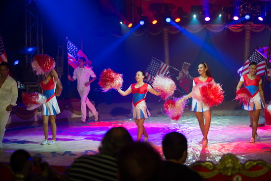 Für das diesjährige Jubiläumsprogramm wird als Sensations- und Werbenummer „l' Homme Canon“ - der menschliche Kanonenschuß – geboten. Das riesige Requisit steht auf der rechten Zeltseite. Dort wurden im Gradin einige Unterzüge ausgespart, so dass die „Kanone“ dort Platz findet. Ein Fangnetz überspannt die linke Seite der Manege und reicht bis weit über die Zuschauerränge. Mit entsprechend großem Brimborium wird der Stunt vorbereitet. Das gesamte Ensemble kommt die Treppenaufgänge hinab in die Manege. Die Herren schwenken US-amerikanische Flaggen und die Damen treten als Chearleader auf. Daniel Diorio steigt auf das Requisit, legt seinen Sturzhelm an und nimmt seinen Platz im Innern der Kanone ein. Nachdem der Countdown vom kompletten Auditorium herunter gezählt wurde, fliegt der Artist nach einem lauten Knall im hohen Bogen mittig in das Netz.
