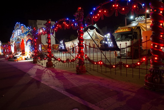 Als Spielstätte wird seit einigen Jahren ein mächtiges, rot-weiß gestreiftes Vier-Masten Chapiteau von vierundvierzig Metern Durchmesser aufgebaut. Acht hohe Quaderpools formen die markante Silhouette und über der langgestreckten Kuppel funkelt der von zahlreichen Lichtern illuminierte Namenszug.