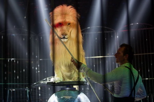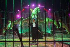 Mit einem Paukenschlag beginnt die Nummernfolge – Steeve Caplot präsentiert seine, u.a. beim Festival von Massy mit einem Hauptpreis ausgezeichnete, hervorragende Raubtierdressur. Sieben Löwinnen und ein weißer Löwe beherrschen ein höchst umfangreiches Repertoire attraktiver Tricks, dass in hohem Tempo gearbeitet wird. Pyramide und verschiedene Sprünge, u.a. hoch an die Käfigwand über zwei aufgerichtete Tiere hinweg, Löwenbar, Teppich und Hochsitzer in der Manegenmitte erfolgen in erstklassiger Ausführung. Darüber hinaus sind auch selten zu sehende Elemente, wie z.B. das parallele hochsitzen zweier Löwinnen auf zwei abliegenden Tieren zu erleben. Furiose Scheinangriffe und ein formidabler „Vorwärts-Steiger“ einer Löwin sind weitere exzellente Tricks und auch der Sprung über den sich niederwerfenden Dompteur hinweg fehlt nicht. Abschließend steigt der weiße Löwenmann in aller Gelassenheit von seinem „Thron“ hinab und präsentiert sich voller Grazie auf einer rotierenden Spiegelkugel. Formidable fünfundzwanzig Minuten klassischer Raubtierdressur.