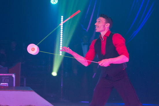 Laurent Fraioli jongliert mit Diabolos. Variantenreiche Routinen werden gekonnt ausgeführt. Besonders zu erwähnen ist akzentuierte und erstklassig auf den Ablauf der Darbietung abgestimmte Begleitmusik. Die abschließenden Touren werden im abgedunkelten Zelt mit beleuchteten Diabolos ausgeführt.