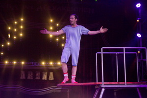Feine Trampolin-Akrobatik, wilde Kaskaden und stimmige Slapstick-Komik kombiniert der zweite Sohn von Markus Frank zu einer mitreißenden Melange, die auf den Rängen bestens ankommt.