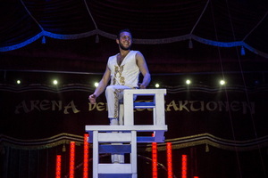Der kubanische Artist Ariel ist mit zwei Darbietungen zu erleben. Zunächst sehen wir seine kraftvolle Arbeit am Chinesischen Mast. In sehr guter Ausführung werden vielseitige Abläufe des Genres gezeigt und eine Reihe gekonnter Handstände auf der Mastspitze runden den Auftritt ab.