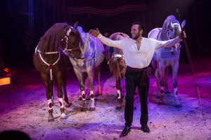 Die „Cavallerie“ des Hauses wird ebenfalls vom Ballett, nun als Gipsy-Phantasie, eingeleitet. Vier feurige Araberhengste beherrschen ein breites Repertoire anspruchsvoller Lauffiguren, die unter der ruhigen und eleganten Peitschenführung von Gitano Frank harmonisch in exzellenter Weise ausgeführt werden. Eine Reihe bestens gelungener Steiger bildet den idealen Abschluss der Vorführung.