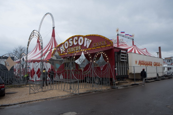 Auch die dekorativ mit Circus-Motiven und den Türmen der Moskauer Basilius-Kathedrale bemalten Frontwagen konnten aufgrund der sehr beengten Platzverhältnisse nicht aufgestellt werden.