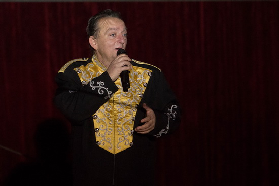 Direktor Nando Frank begrüßt sein Publikum im ausverkauften weiten Rund. Als äußerst angenehmer und eloquenter Manegensprecher rückt er seine Artisten mit sonorer Stimme ins rechte Licht.