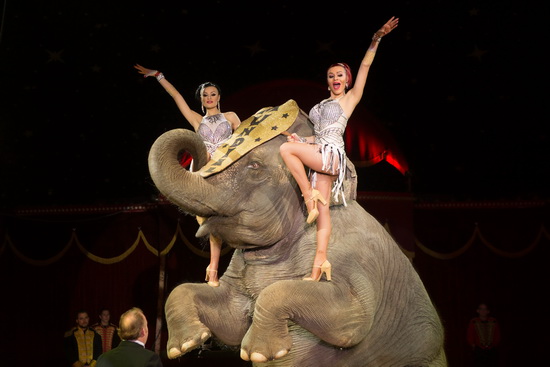 Zum Abschluss der Spielfolge präsentieren die beiden jungen Frauen die drei asiatischen Elefanten des Circo Mundial in einem tiergerechten und variantenreichen Ablauf. Aktionen auf Tonneaus, Hochsitzer, abliegen und anderes mehr werden von den mächtigen Rüsseltieren bereitwillig ausgeführt. Mit einem perfekten Spagat zwischen den Elefantenköpfen findet der Auftritt seinen gelungenen Höhepunkt.