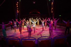Das große, fröhliche Finale vereint die Mitwirkenden in der Manege und Direktor Nando Frank stellt seine Artisten noch einmal vor. Mit einer flotten Choreographie verabschiedet sich das Ensemble vom begeisterten und stehend applaudierenden Publikum. Die Clowns verharren noch in der Manege, als sich eine kleine Fee hinzu gesellt und gemeinsam verabschieden sie die Besucher, die sich auch nach gut drei Stunden Programmdauer nur zögerlich von ihren Plätzen erheben.