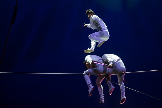 Einen erstklassigen Auftritt absolviert Anastacia Jidkova am Washington-Trapez. Die Balancen unter der Kuppel, großenteils im freien Kopfstand, erfolgen mit großer Sicherheit in sehr guter Ausführung.