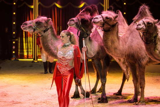 Selbstverständlich ist auch die Familie Spindler-Barelli prominent in der Manege zu erleben. Harry Barelli führt in seiner unerreichten Art durchs Programm. Zudem bringt er den prächtigen andalusischen Hengst „Zorro“ in die Manege, der mit Spanischem Tritt, tiefen durchstecken des Kopfes zwischen den Vorderhufen und exzellenten Steigern aufwartet. In einem weiteren Act mit Tieren präsentiert Ramona Barelli vier Kamele. Die Trampeltiere, sie tragen schimmernde Schabracken beherrschen ihr Repertoire ansprechender Lauffiguren sicher.