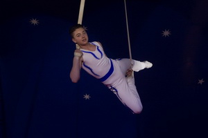 Daniel Kortinig, jüngster Sohn des Hauses, arbeitet in dieser Spielzeit eine Luft-Darbietung. An den Strapaten erfolgt eine gefällige Abfolge kräftezehrender Tricks, die von dem sechszehnjährigen Artisten in sehr guter Ausführung präsentiert werden.