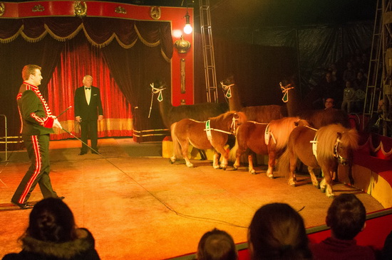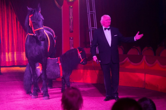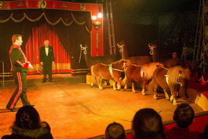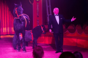 Henry Mullens, Grandseigneur des niederländischen Circus – er war in den 1960er Jahren als Jongleur zu Pferd bei Sarrasani und später mit Schimpansen im Circus Barum engagiert, präsentiert die erste Dressurnummer dieser Show. Ein perfekt laufendes Groß-und-Klein eines Friesen und eines schwarzen Ponys werden von dem Altmeister mit großer Souveränität geleitet.