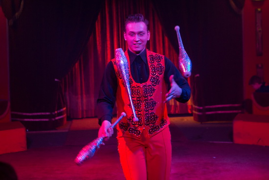 Juniorchef David arbeitet mit seiner Tempojonglage die Finaldarbietung. Mit silbernen Keulen und Tennisbällen erfolgen die sehr sicher ausgeführten unterschiedlichen Muster. Fünf von innen beleuchtete Keulen sorgen für besondere Effekte im ansonsten vollkommen abgedunkelten Zelt. Die abschließenden Routinen werden mit Ringen ausgeführt und wenn der Jongleur acht von ihnen in der Luft hält und nach „Fehlversuchen“ abschließend sicher fängt, kennt der Jubel auf den Rängen keine Grenzen.