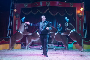 Der Chef des Hauses präsentiert in dieser Spielzeit zwei Dressur-Darbietungen. Zunächst trippeln vier Shetland Ponys munter ihre Figuren in den Manegensand. Vielseitige Abläufe werden vom souverän agierenden Dresseur im Wechsel mit verschiedenen Kruppensteigern abgerufen. Mit einigen gekonnten Da Capo Steigern findet der Auftritt seinen gelungen Abschluss.