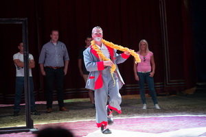 Clown Beppo verbreitet mit seinen Späßen auch in dieser Saison wieder Frohsinn. Mit fünf Mitspielern aus dem Gradin wird die „Filmszene“ geboten. Der jugendliche Sprechstallmeister Kevin van Geet trifft mit seinen Ansagen den Nerv des Publikums und führt in angenehmster Weise durch das Programm.