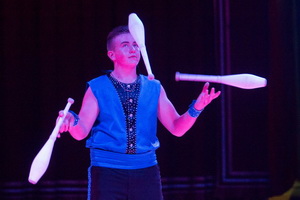 Aaron Zinnecker jongliert sicher und schwungvoll mit Bällen, Ringen und Keulen. Der sechzehnjährige Artist wirkt sehr routiniert und beherrscht eine breite Palette verschiedenster Routinen. Mit der effektvollen Jonglage hell lodernder Fackeln findet der Auftritt seinen Höhepunkt.