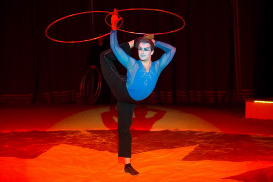 Der irische Artist Garret ist zwei Mal im Verlauf der Show zu erleben. Zunächst präsentiert er eine schwungvolle Hula Hoop Darbietung. Vielerlei interessante Muster und genretypische Abläufe werden elegant ausgeführt.