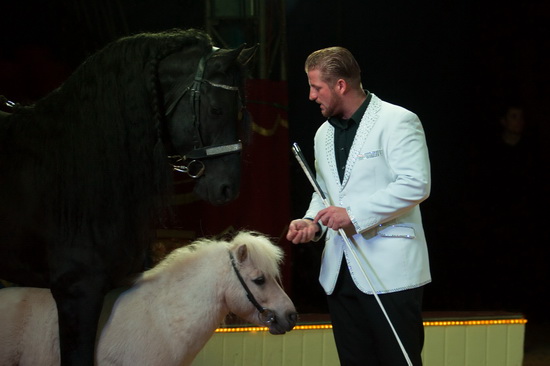 Die exzellenten hauseigenen Dressurnummern werden von Direktor Roman Zinnecker und Juniorchef Marlon Zinnecker vorgeführt.