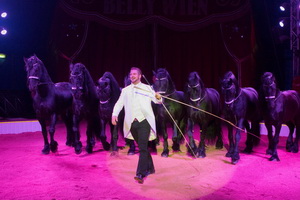 Ein besonderer Höhepunkt stellt die eindrucksvolle und harmonische Freiheitsdressur mit acht Friesen von Marlon Zinnecker dar. Ein Ballett anmutiger Schönheit bieten die seidig schimmernden Hengste. Ein umfangreiches Repertoire anspruchsvoller Figuren wird souverän und mit großer Leichtigkeit vorgetragen. Drei weiße Araberhengste bieten mit zahlreichen erstklassigen Steigern ein fulminantes Da Capo.