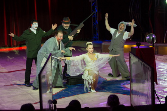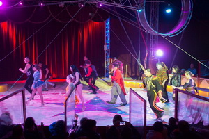 Der romantische Auftakt der Show sieht zunächst Clown „Zippogalli“, alias Orlando Köhler in Aktion. In der abgedunkelten Manege sammelt er einen einzelnen Lichtstrahl in seinen Eimer und als er diesen in die Manege ausleert, ist die komplette Truppe im roten Ring präsent und bietet kleine Kostproben ihres Könnens.