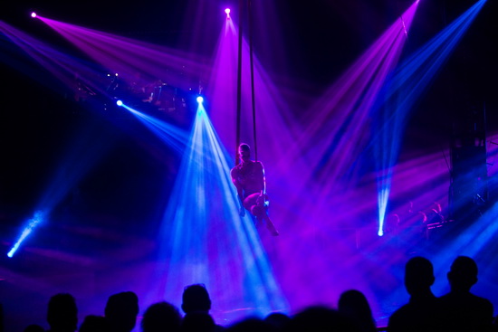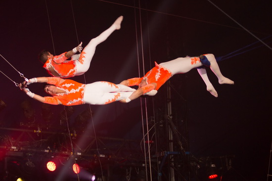 Natalia Bouglione brilliert mit einer enorm kraftvollen Arbeit an den Strapaten wie man sie von weiblichen Artisten nur höchst selten sieht. Einarmige Aufschwünge folgen in großer Anzahl aufeinander und viele kräftezehrende Haltetricks begeistern mit ihrer erstklassigen Ausführung. Souverän im Verkauf wird diese hervorragende Luftdarbietung durch eine exzellente Ausleuchtung zu einem Highlight unter der Kuppel.