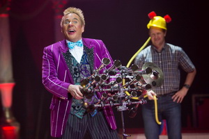 Mit drei Reprisen ist Clown Don Christian im Verlauf der Show zu erleben. Zunächst spielt er mit einem gelben Luftballon in Interaktion mit Logenbesuchern. Der Ballon wird gegen immer größere Exemplare ausgetauscht und schließlich fliegt der Clown, an dem größten Ballon hängend durch die Kuppel. Mit gekonntem Trompetenspiel überbrückt er den Aufbau des Sicherheitsnetzes des Fliegenden Trapezes. Während des Spiels mit Popcorn werden schnell drei Mitspieler rekrutiert, die vom Clown sofort in der Manege zu einer veritablen Band, die auf allerlei skurrilen Instrumenten ihr Bestes gibt, geformt werden und den Clown bei seinem Konzert auf Hupen nach Kräften unterstützen.