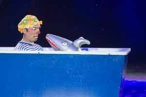 Das Spiel mit einem Gummiband und der Kampf gegen einen weißen Hai in der Badewanne werden gekonnt vorgetragen. Die Westernparodie, in der ein Junge aus dem Publikum mitwirkt, endet im Showdown.