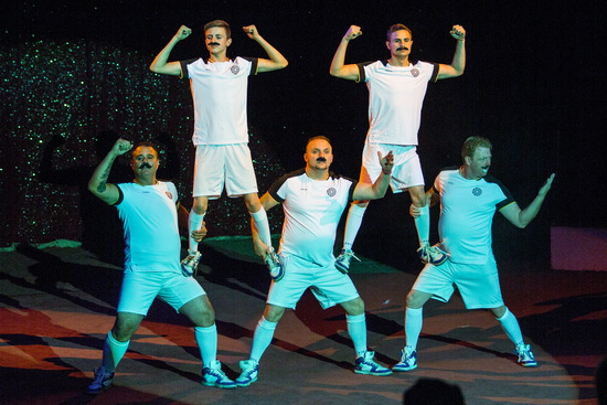 Wenig später ist Manu Frank zusammen mit seinem Bruder Gino und dessen Söhnen Menowin und Alexander sowie Salvi Tonito als „Alte Kameraden“ zu erleben. Die fünf „würdigen Herren“ drücken Handstände bauen Pyramiden. In den Schlusstrick – doppelter Salto vom Schleuderbrett auf die Schultern der Partner wird annonciert – ist auch ein Zuschauer involviert, was leider zur „vorzeitiger Zerstörung“ des Requisits führt.