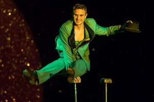 Der zweite Programmteil beginnt mit der ausgezeichneten Handstand-Equilibristik von Alexander Frank. Auf einem hohen Piedestal zeigt der sympathische junge Mann eine Vielzahl unterschiedlicher, kraftvoll ausgeführter Handstand-Figuren. Die abschließenden Highlights seines Auftritts arbeitet er an der Spitze einer langen Stange in beachtlicher Höhe.