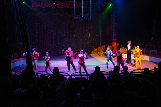 Die Show steht unter dem Motto "Revival" und mit einer professionell erstellten Tonaufnahme werden die Besucher aus dem Off begrüßt und ihnen die traditionsreiche und bewegte Vergangenheit des Circus Busch-Roland näher gebracht.