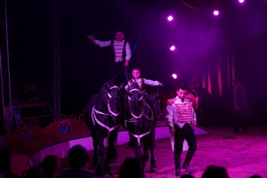 Enrique und Djersey, zehn- und fünfjährige Nachwuchsartisten des Cirque Achille Zavatta Fils, sind in diesem Jahr in einem gemeinsamen Auftritt zu erleben. Rasant präsentiert sich der junge Mann als Stehend-Reiter, der bereits gekonnt die Zügel führt und mit stolz emporgestreckter Trikolore die Manege umrundet. Seine junge Cousine lässt ihr Lieblingspony sein Können als Steiger zeigen.