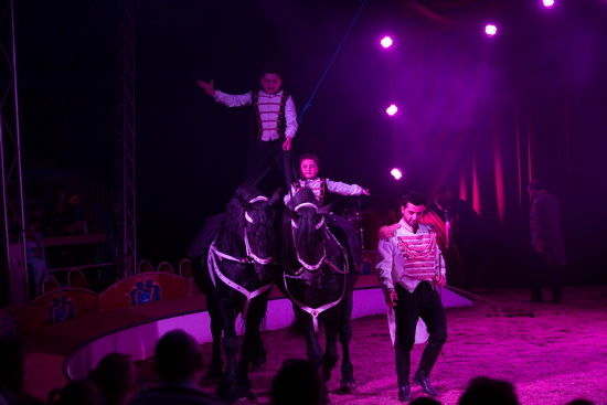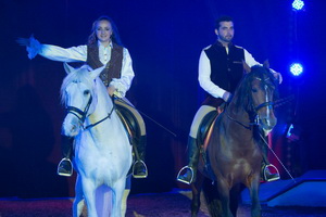 Zwei weitere Dressur-Darbietungen komplettieren die diesjährige Spielfolge. Cassy und ihr Onkel Jessy Cagniac reiten eine doppelte Hohe Schule. Temperamentvoll interagieren die Partner im roten Ring, reiten attraktive Figuren und bieten eine Reihe verschiedener Lektionen.