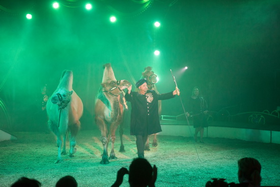 Yannick Cagniac startet die abwechslungsreiche Dressurfolge mit drei Kamelen. Diese beherrschen ein umfassendes Repertoire abwechslungsreicher Lauffiguren. Ihnen folgt ein Zebu zusammen mit zwei Watussi-Rindern. Ein Dromedar zieht in Achten seine Bahnen um zwei Postamente und liegt an der Piste ab. Eine Gruppe temperamentvoller Lamas erobert den roten Ring, überspringt das Trampeltier und abschließend eine hohe Barriere im Ausgang der Piste. Zu guter Letzt sind drei Zebras zu erleben.