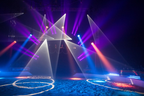 Die bestens ausgestattete opulente Lichtanlage ist an einem hoch über der Piste hängenden Gitterrohrring, sowie an zwei Traversen zwischen den Masten und beidseits des Artisteneingangs montiert. Mit einem exzellenten, in einem Circus dieser Größenordnung nicht oft zu erlebenden Lichtdesign wird die Show in einzigartiger, in beispielhafter Weise in Szene gesetzt und die auftretenden Artisten perfekt unterstützt.